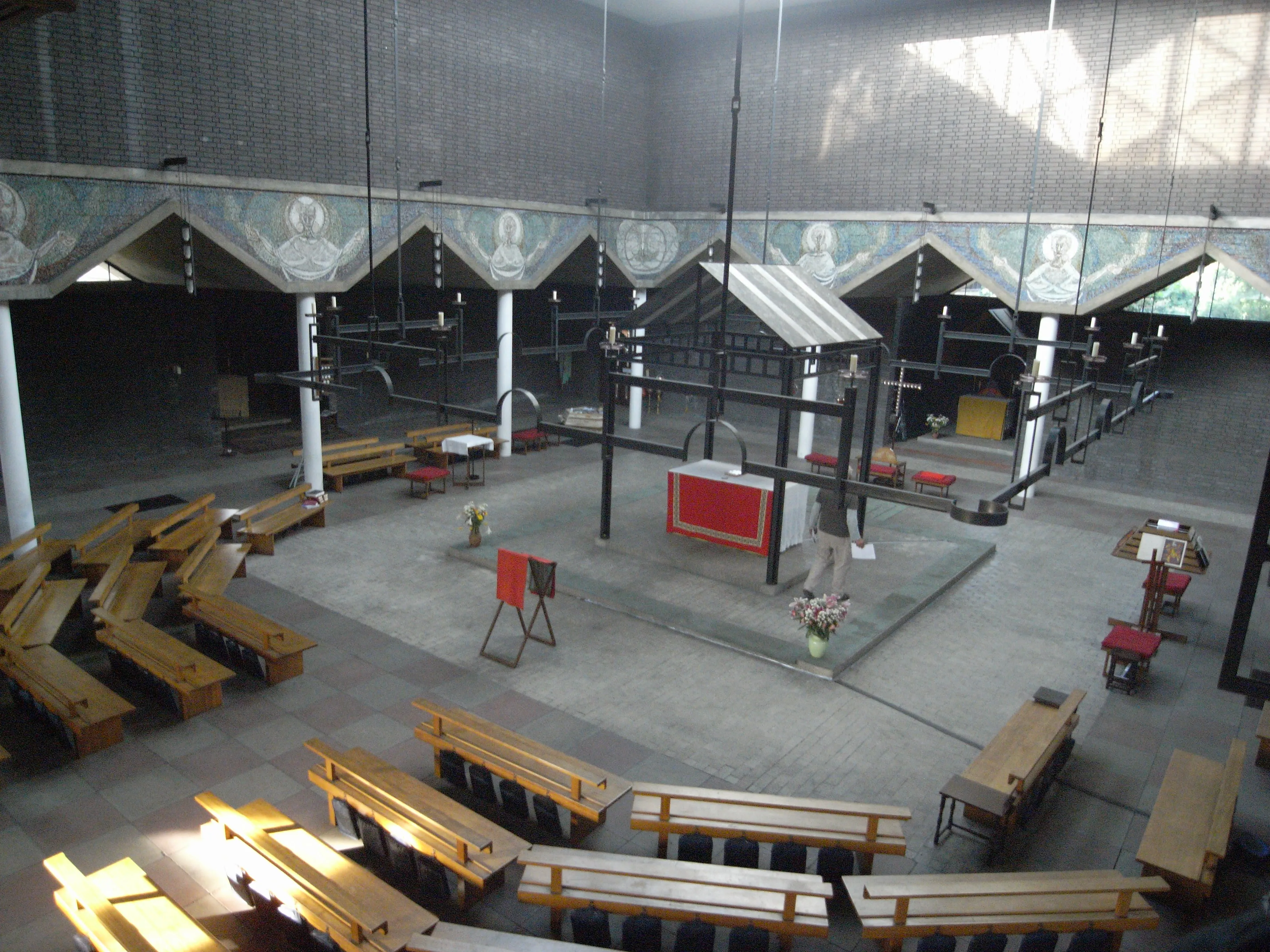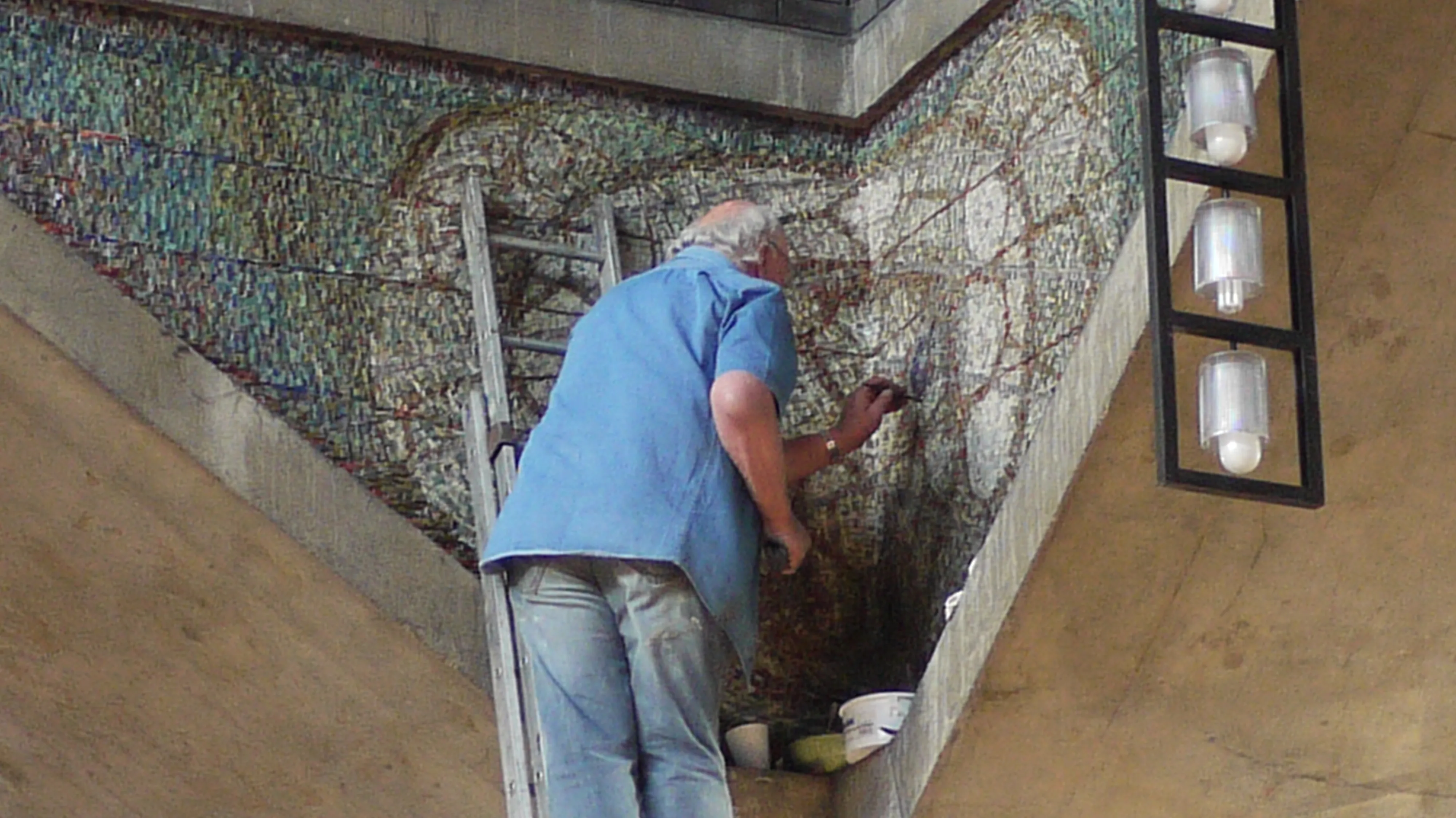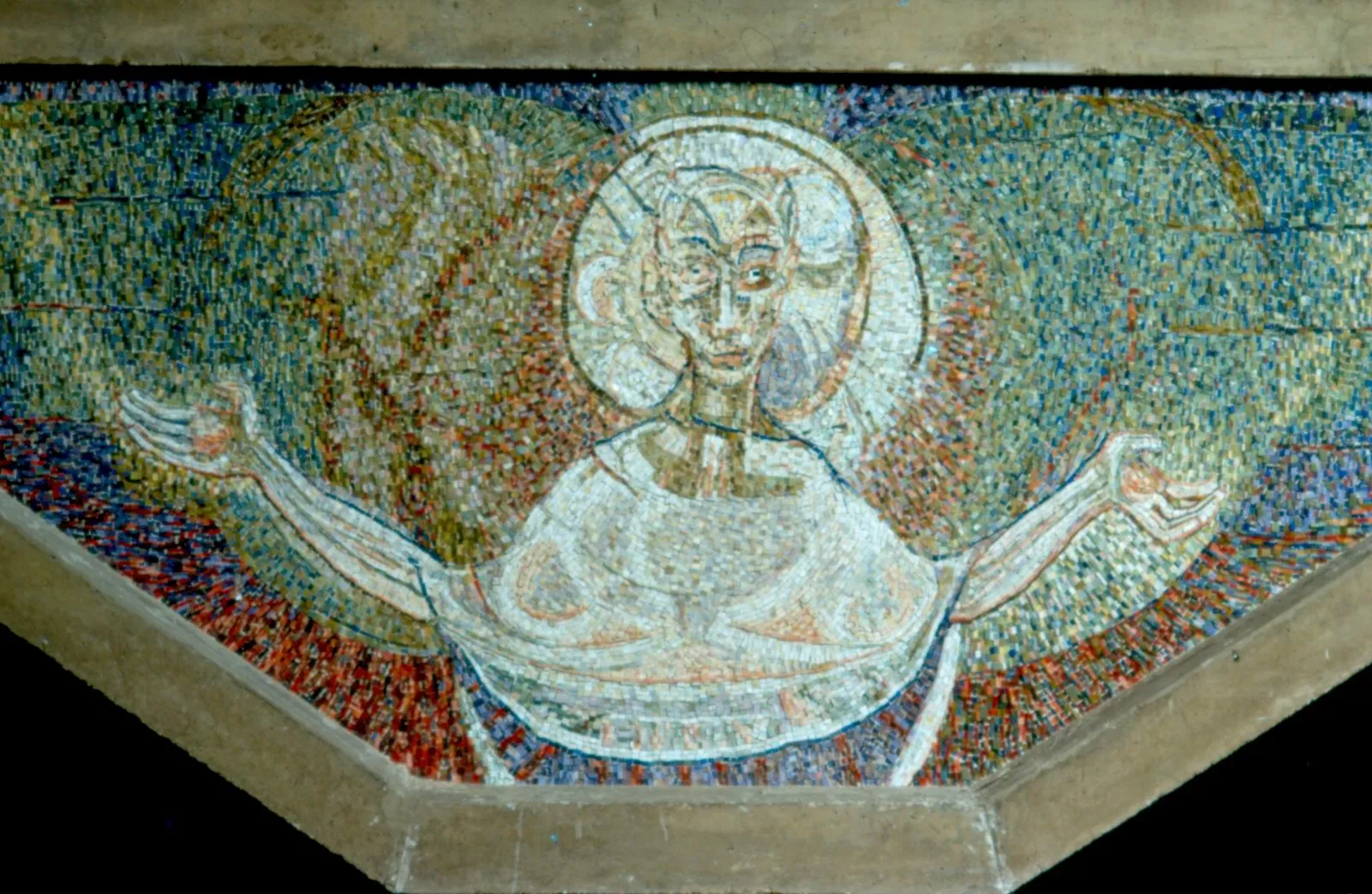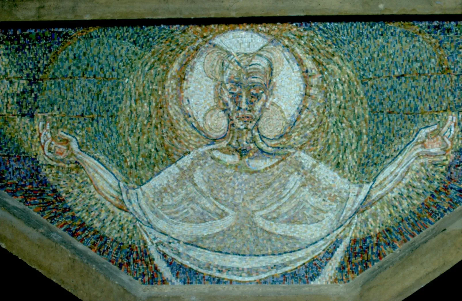 Charles Lutyens was commissioned in 1963 to create a mosaic mural of “Angels of the Heavenly Host” in St. Paul’s Church, Bow Common. The mural was integral to the design and structure of the building.