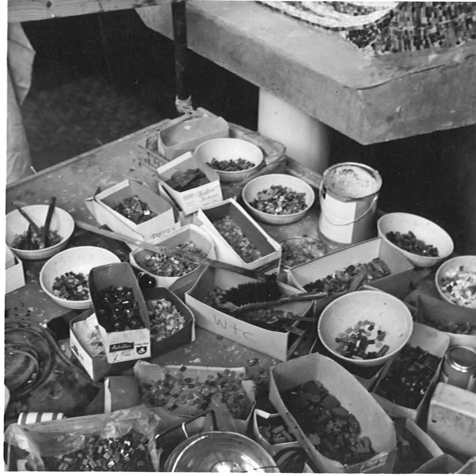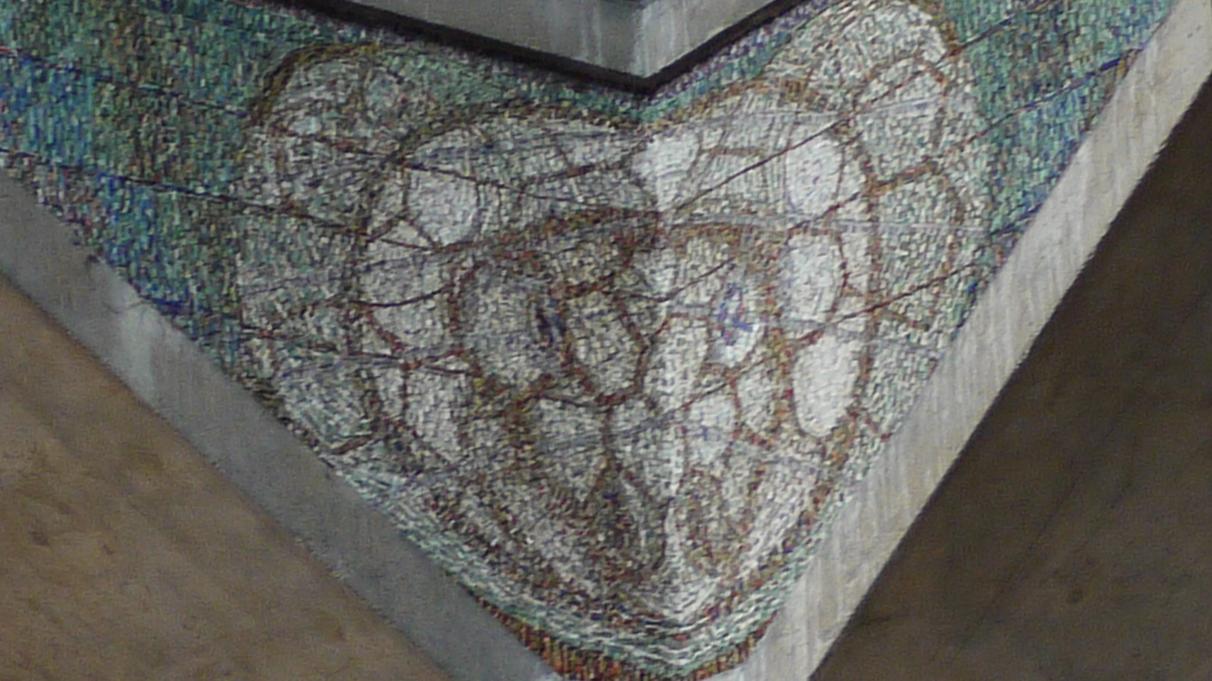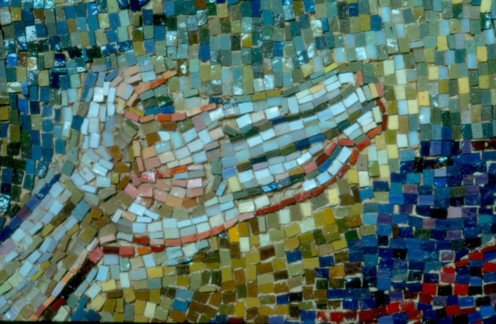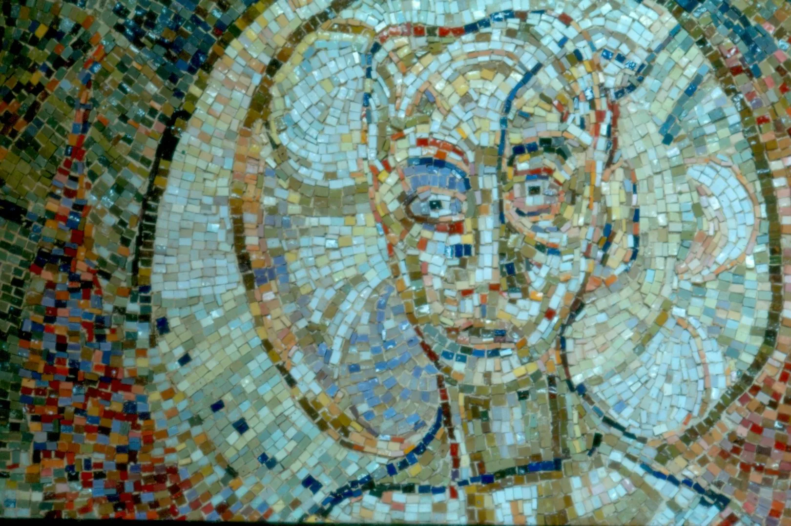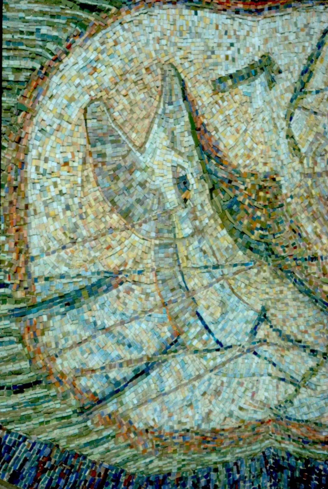 The difficulty of creating ‘Angels’ on the walls of the church was resolved by what seemed to be a characteristic of ‘Angels’ that according to the stories it was not known what they would look like before they ‘appeared’. The application of the tesserae was approached in this light.